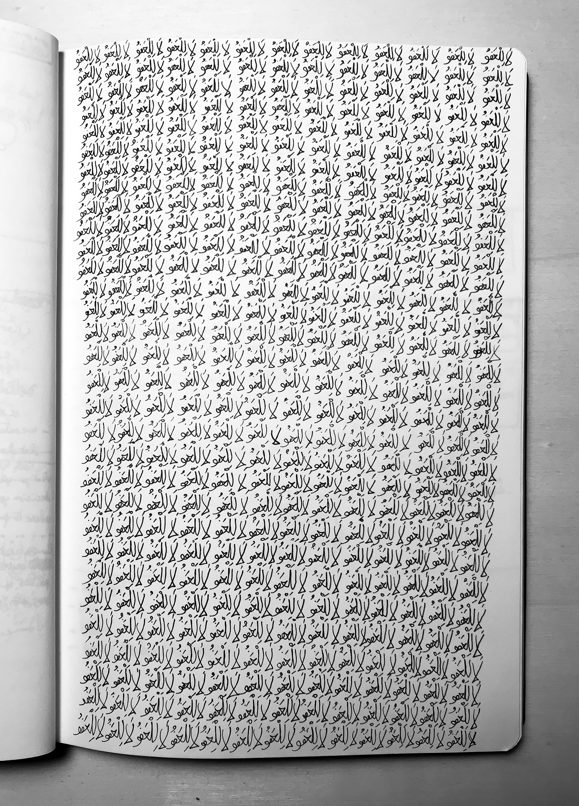 ‘annexes’ is a series of written or typed religious and political expressions. it‘s a subdivision in the project ‘in the names of god,’ consisting of repeatedly written slogans and expressions that were used during protests in the streets of lebanon during the revolution (2019), right before the covid-19 pandemic started and people had to go through the quarantine, and oppress their revolt. it was the closest i could get to live the experience of constant protests from abroad. write, repeat, remember, get it out, forget the sense of the words, get tired, stop, repeat all the above.