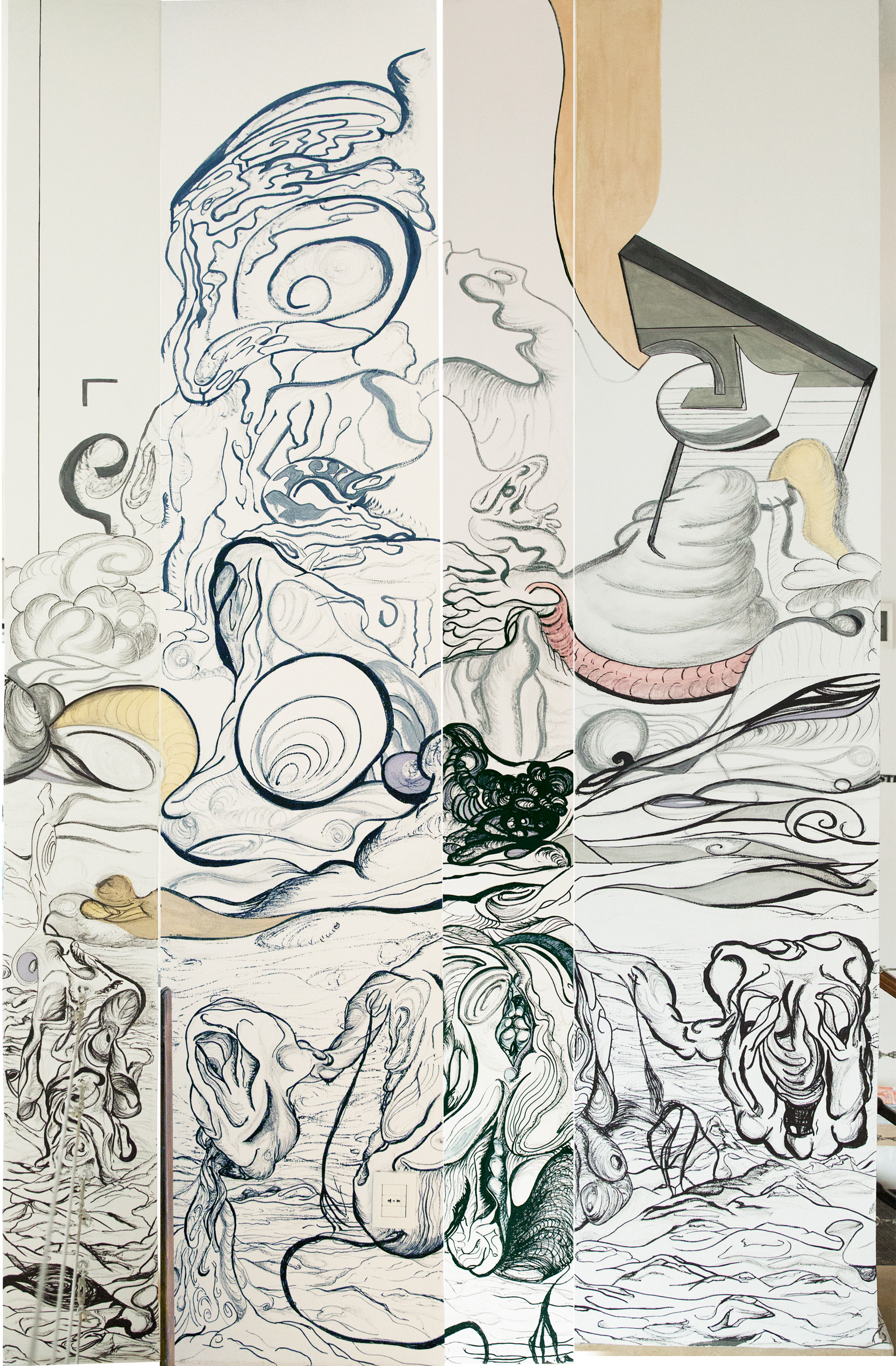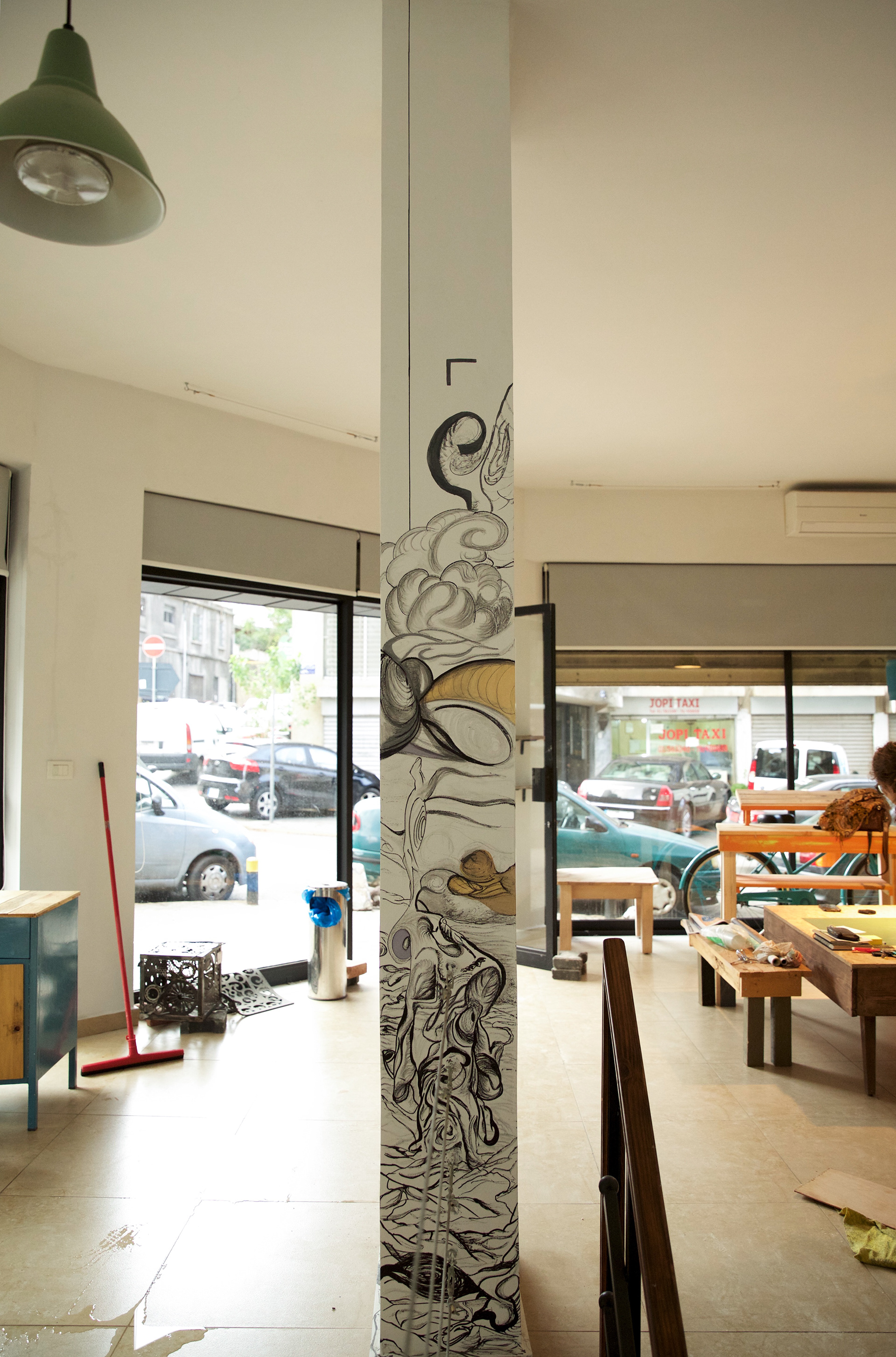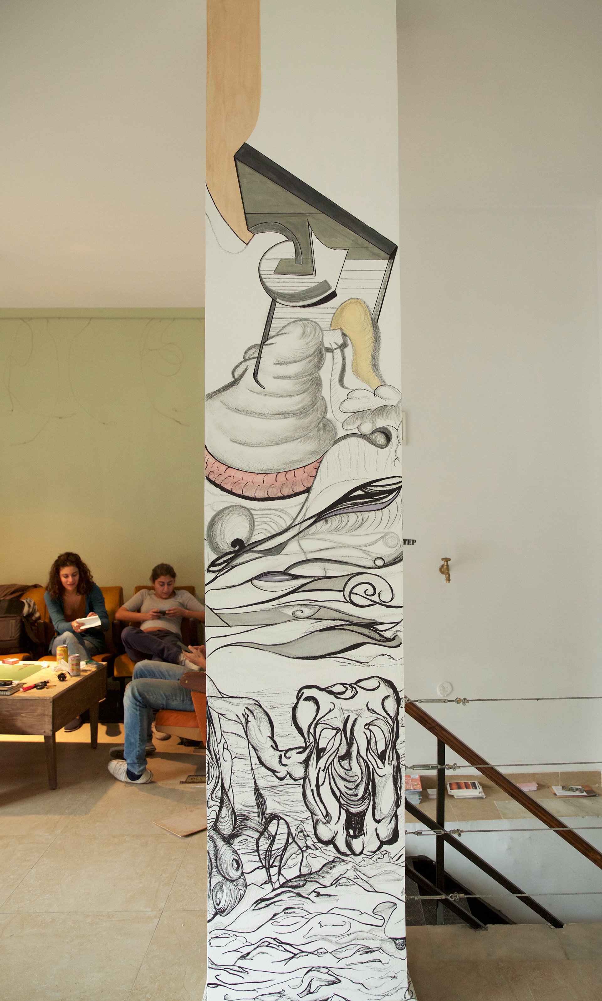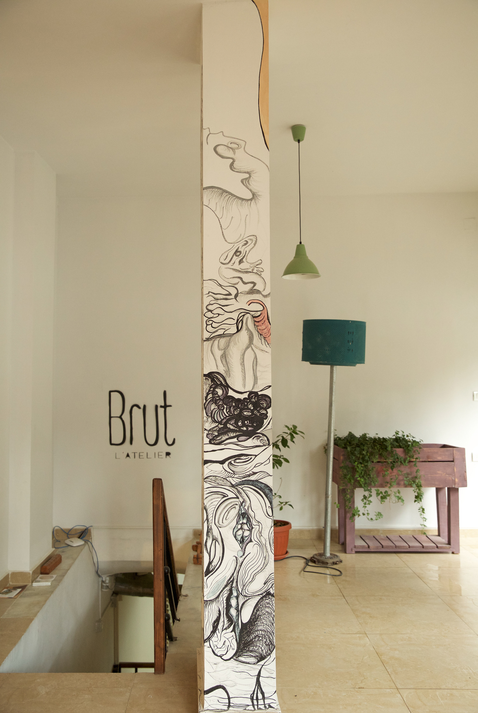 Wall column surreal painting shown during the 2nd exhibition of Brut l'Atelier "Volume II" back in 2015.